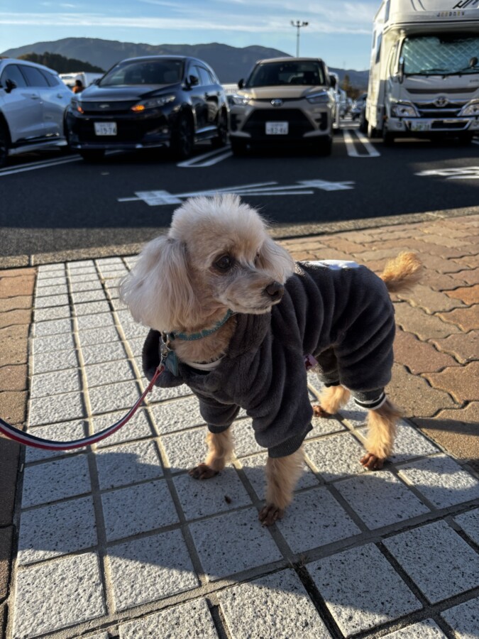なんと!前日トリミングに来てくれたハウル君に恵那峡SAでバッタリ!